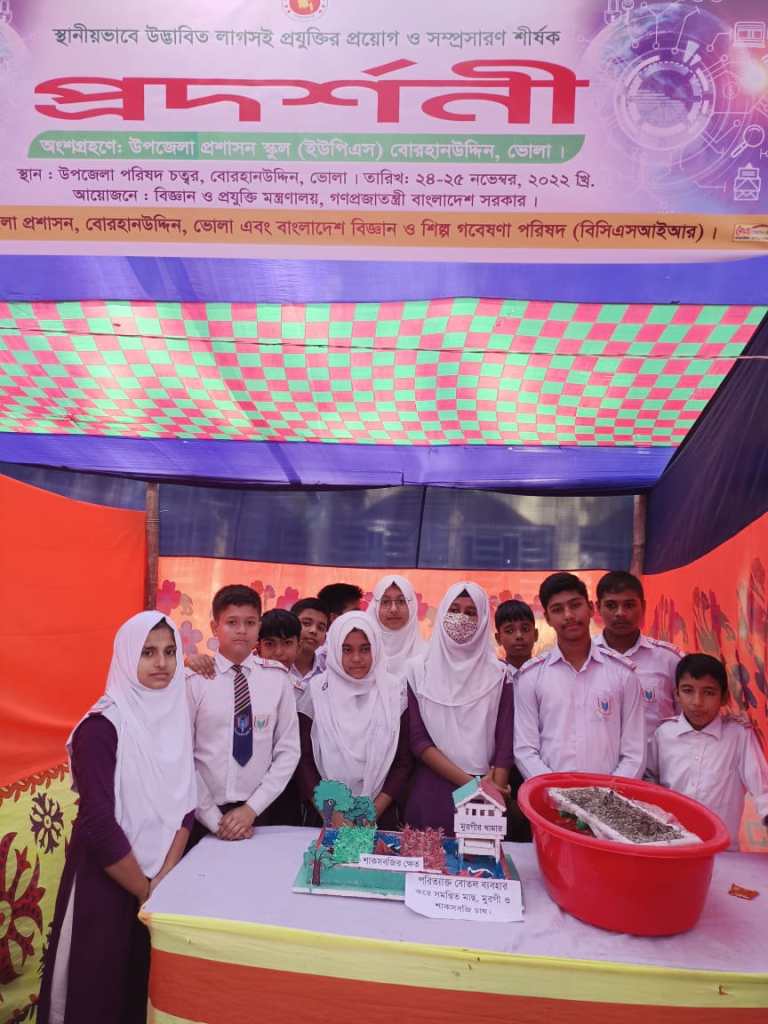 স্থানীয়ভাবে উদ্ভাবিত লাগসই প্রযুক্তির প্রয়োগ ও সম্প্রসারণ শীর্ষক প্রদর্শনীতে “পরিত্যাক্ত বোতল ব্যবহার করে সমন্বিত মাছ, মুরগী ও শাকসবজি চাষ” বিষয়ক প্রজেক্ট উপস্থাপন করে প্রশংসা কুরিয়েছে উপজেলা প্রশাসন স্কুল (ইউপিএস) এর শিক্ষার্থীরা।