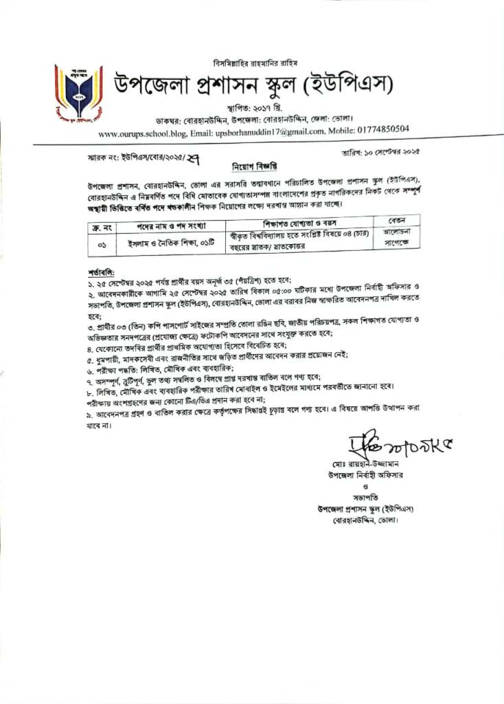 Uncategorizedশিক্ষক নিয়োগ বিজ্ঞপ্তি প্রকাশি… 09/21/202509/21/2025 Al Shahariar Hemu জরুরী ভিত্তিতে শূণ্য পদে ০১ (এক) জন ধর্মীয় শিক্ষক (খন্ডকালীন) আবশ্যক। নিয়োগ বিজ্ঞপ্তি নিম্নরূপ। Share this: Share on X (Opens in new window) X Share on Facebook (Opens in new window) Facebook Like Loading... Related Published by Al Shahariar Hemu View all posts by Al Shahariar Hemu